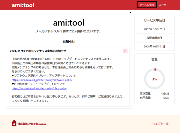 ami:toolメール(enat.jp)管理画面にログインして確認する方法