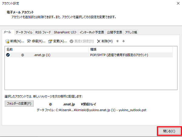 - 10.最後に修復したメールアカウントを使って正常に送受信ができるかご確認ください