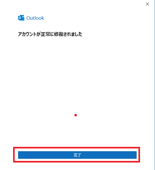 - 8.「アカウントが正常に修復されました」と表示されたら「完了」ボタンをクリックしてください