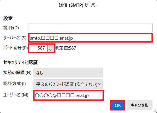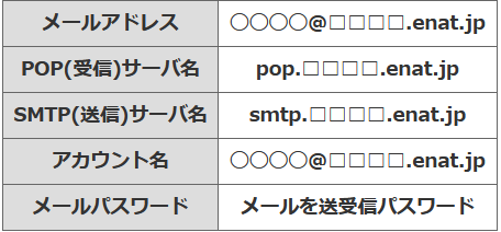 ・サーバー名(S) → smtp.□□□□.enat.jp