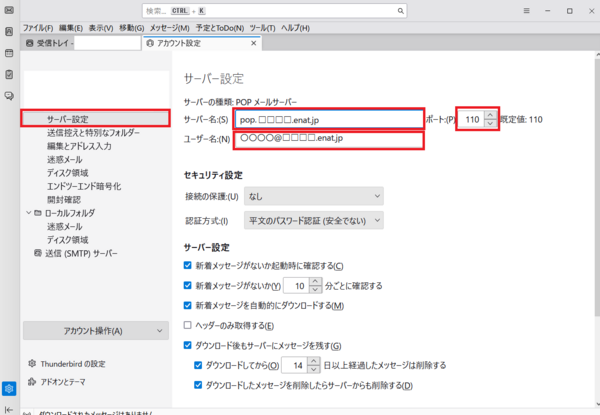 サーバー名(S) → 「pop.□□□□.enat.jp」
