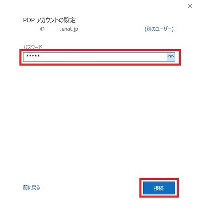 メールアドレスの「パスワード」を入力し「接続」ボタンをクリックします。