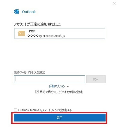 以上でami:toolメールアドレスをMicrosoft Outlook2016へ設定する手順は、完了です。