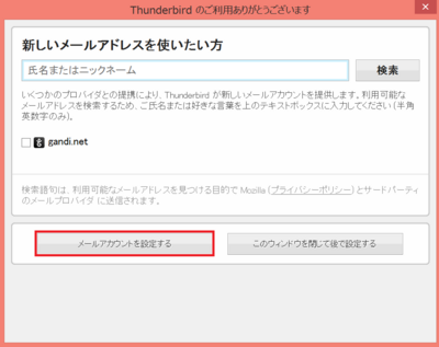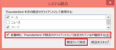 「起動時にThunderbirdが既定のクライアントとして設定されているか確認する(A)」を選択した後