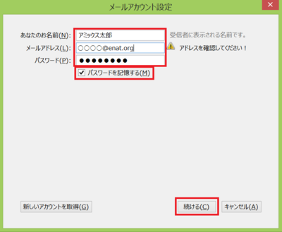 「メールアドレス(L)」を入力します。 例:○○○○@enat.org