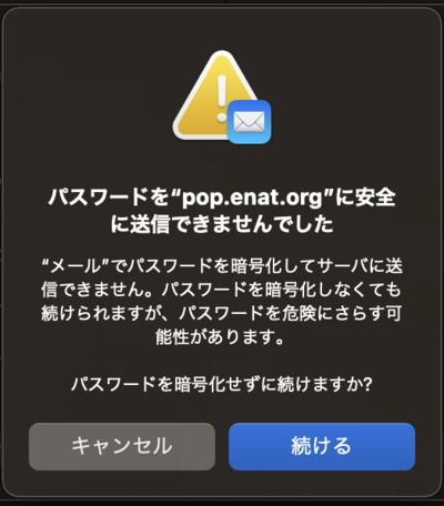 再度エラーメッセージが表示されますが「続ける」をクリックしてください。