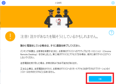 「注意!誰かがあなたを騙そうとしているかもしれません。」