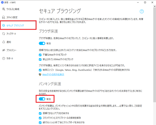 PCプロテクション(J-Safe)インストール後に銀行や証券会社のウェブサイト内で一部の情報が表示されない場合、以下の手順を試してみてください。