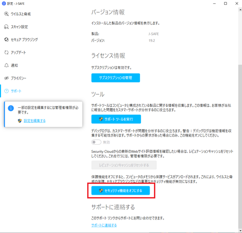 銀行や証券会社などのウェブサイト利用時に一部の情報が表示されないなどの問題が発生した場合、 次の手順にて一時的にPCプロテクション(J-Safe)の機能を無効化する事が可能です。